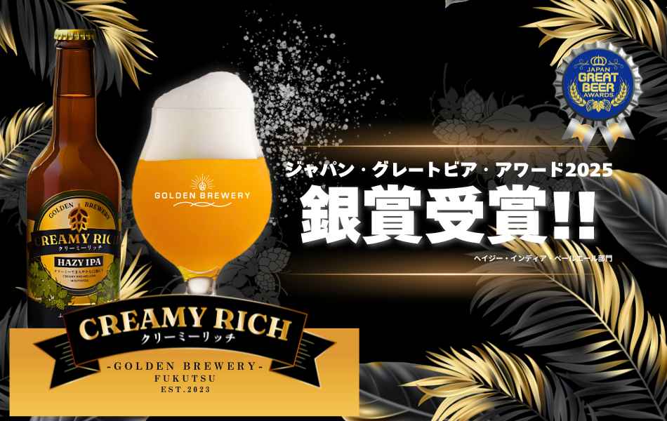 この度、ジャパン・グレートビア・アワーズ2025におきまして弊社のヘイジーIPA(商品名:クリーミーリッチ)が銀賞を受賞いたしました。 「クリーミーリッチ」はトロピカルな風味が豊かに広がり、クラフトビールが初めてのお客様にも大変ご好評をいただい... -